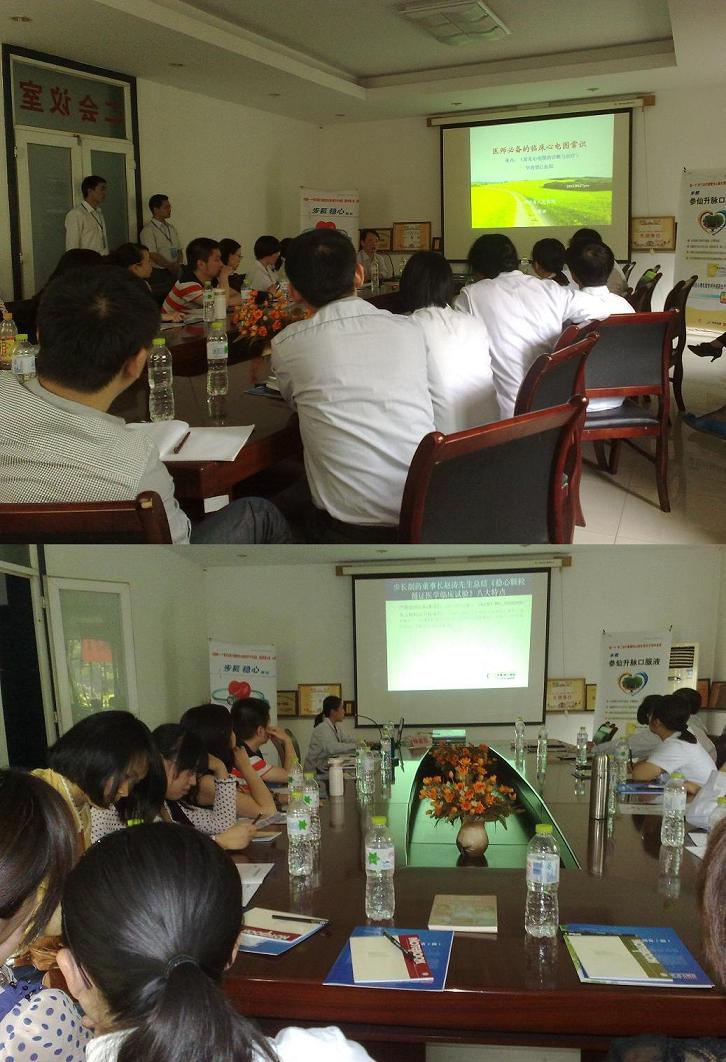 2013年04月17日(星期三)14:30-18:20,在四川大学望江医院三楼二会议室,四川省人民医院心内科林家弟教授给校医院全体医护人员进行了题为《临床医生必备的心电图常识》的学术讲座。林教授从心电产生机理、常见心电图伪差的识别、常见心电图的诊断与鉴别诊断几个方面进行了详细讲解;广大医务人员就临床实际工作中遇到的实际问题与林教授进行了广泛的交流,望江医院邱劲松主任对稳心颗粒的询证医学研究进行了报告。