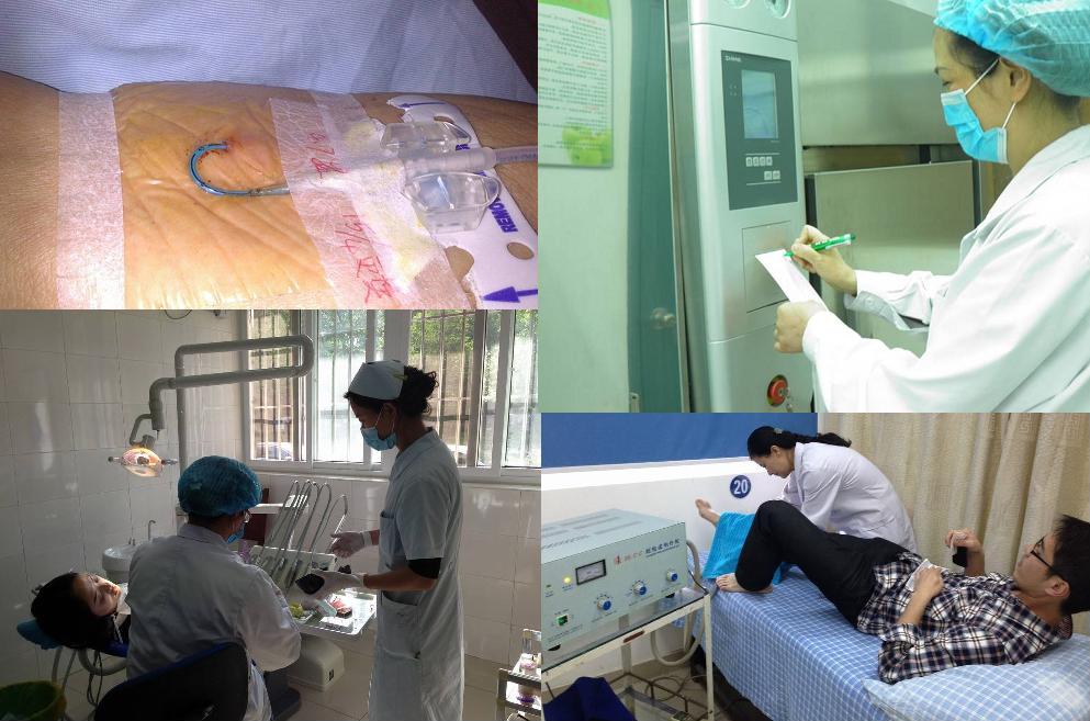 2)院内一些科室从无到有,从有到专业化发展:建立氧疗室、雾化室、消毒供应室,理疗室;还有我们的口腔得到了长足的发展,培养专业护士协助医生操作。