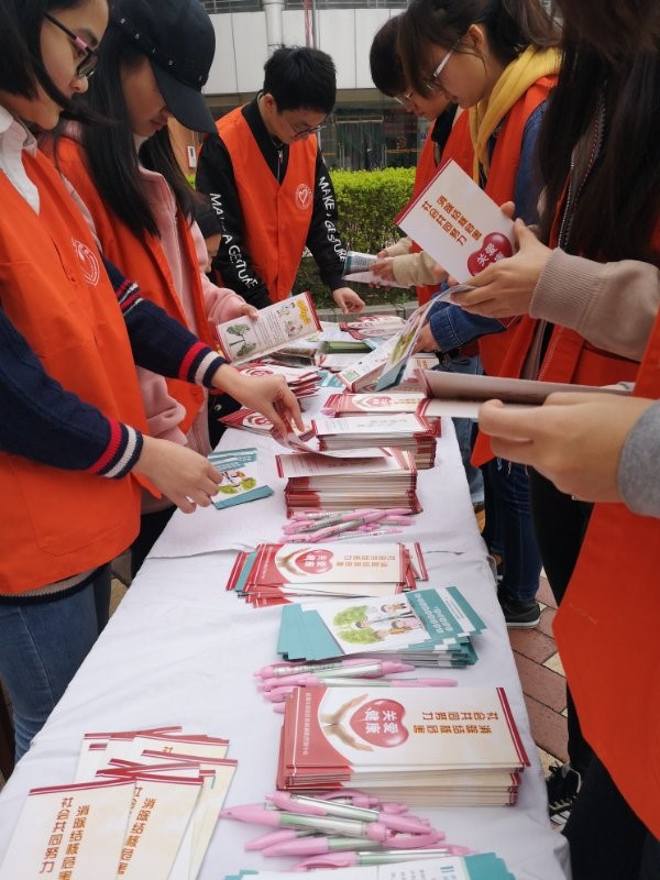 早上9点45分,宣传人员准时到达了宣传地点,挂起宣传横幅,在醒目位置粘贴宣传单、在宣传栏张贴海报,并向来往的同学发放宣传单和手册,以及印有结核宣传标语的小礼品,同时开展了现场咨询服务。此次活动持续了一个上午,累计发放宣传单、宣传手册300份、100分小礼品、提供咨询近二十人次。