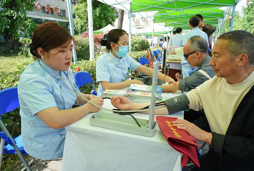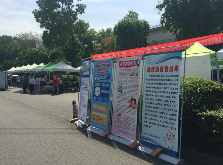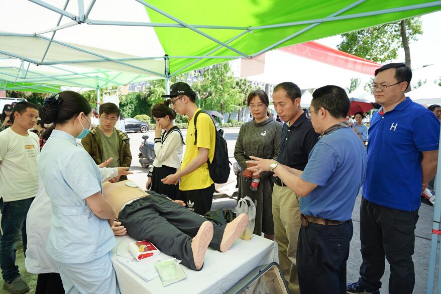 好风凭借力、扬帆正当时。在海纳百川、有容乃大的百年校园里,在古朴典雅、庄严厚重的明德楼和钟亭旁,在青砖红瓦、碧树青池的交相辉映下,四川大学校医院缓缓进入我们的眼帘。今天,天清气朗,微风和韵;今天,小荷初露,草木一新;今天,人影攒动、白衣成林。是的,一场以“健康中国、人人健康、健康校园、师生健康”为主题、面向全校广大师生的健康科普宣传与义诊活动拉开帷幕。此次活动精彩纷呈、内容丰富,涵盖了预防、临床诊疗、现场培训等诸多领域,为全校师生奉上了一场健康大片、一部卫生大戏。在预防宣传处,精心制作了包括艾滋病、肝炎、结核、水痘等在内的各种传染病防治知识展板,还通过画报、折页等多形式宣传推荐10种健康的生活方式,助力师生健康知识积累,良好习惯养成。在临床义诊处,派出精锐专家团队现场坐诊,针对发病率居高不下的高血压、糖尿病、心脑血管疾病、消化道疾病,口腔疾病等提供专业的咨询和诊疗。在免费检测现场,更是人头攒动,男女老少争先恐后,因为校医院提供的骨密度、血糖、血型、血压、身高与体重指数等身体指标测量更受大众欢迎。另外,为了提高全校师生的急诊与急救意识,在义诊现场还精心安排了心肺复苏(CPR)的现场教学演示,医护人员一边讲解要领,一边实际操作演示,师生们积极模仿、动手参与,这种极具实用性的教学演示一定会让师生们受益匪浅。