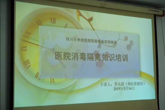 为了提高医院感染防控意识和敏感性,加强医院感染的规范化和科学化管理,最大限度降低医院感染风险,绷紧质量安全的弦,切实保障医疗安全。校医院在2019年的优质服务月,为全院安排了一场关于医院感染管理和消毒隔离的知识讲座。本次讲座的主讲人是校医院预防保健科的主治医师贾贞超,医院各科室的主任和护士长,以及其他相关人员都来参加了本次培训。
